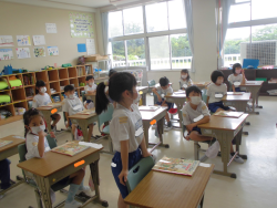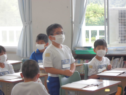 「がっこうにくるまでにたすけてもらっている人について振り返ること」をテーマに学習していました。子どもたちは、「誰に」「どんな場面で」助けてもらっているかを視点に振り返るとともに、命の大切さや感謝の気持ちについても意見を交流していました。