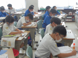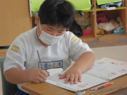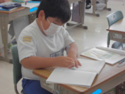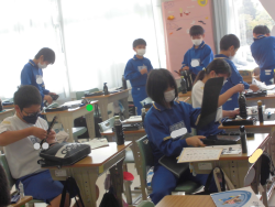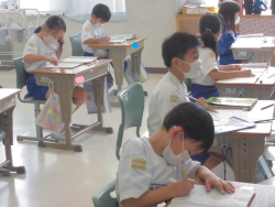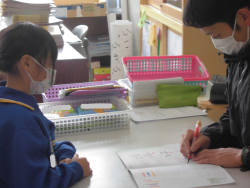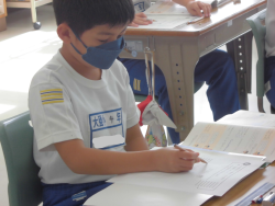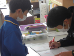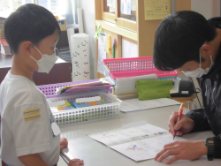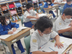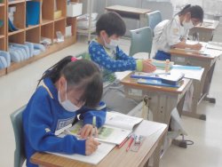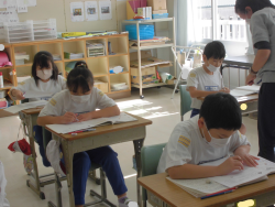 「3つの部分の位置に気を付けて書くこと」をテーマに学習していました。子どもたちは、前回に続き、練習や清書をしていました。※写真は、手際よく後片付けをしている様子です。