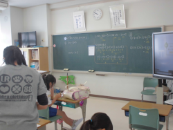 「絵を見て、“4のだんのかけ算の式”になるような問題をつくること」をテーマに学習してました。子どもたちは、“4のいくつぶん”を視点にしながら問題つくりをしていました。