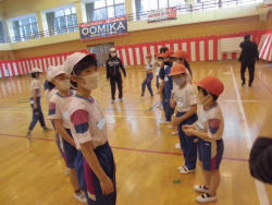 子どもたちは、第4学年修了と第5学年への進級を間近に控えている中、ウォーミングアップ(自己紹介を含む)・だるまさんの一日・ティーボールを通して、互いを知ったり、かかわり合ったりして、有意義な時間を過ごしました。
