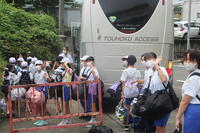 2023年9月6日 15時33分宿泊活動1日目出発式の様子をお伝えします。在校生の見送りを受けながら、元気に出発しました。
