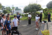 2023年9月7日 16時39分宿泊活動2日目が終了し、6年生17名全員が無事帰校しました。疲れた表情の中にも充実した時間をすごした様子が見られました。写真は帰校式の様子です。