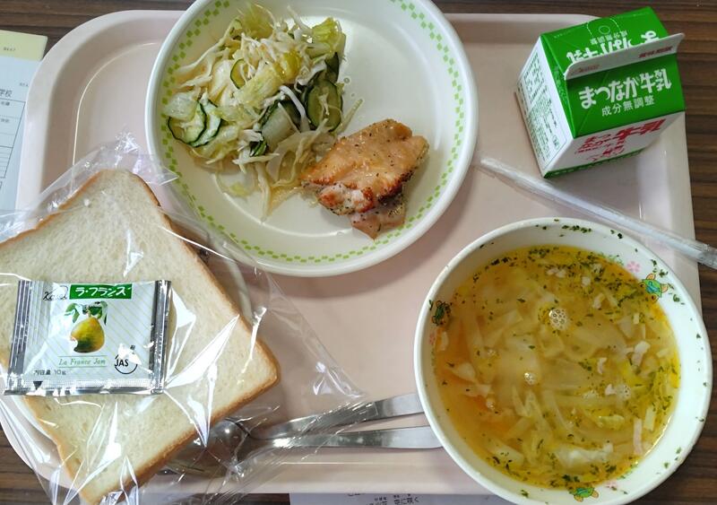 食パン 鶏肉のハーブ焼き レタスサラダ コンソメスープ ラフランスジャム