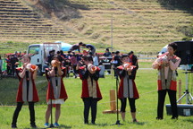 2017年5月5日 12時13分 5月5日こどもの日。大甕小学校のふるさとクラブの精鋭達は、この日、野馬追い祭場地で行われた「サムライフェス」に参加しました。子ども合戦の始まりと終わりに「礼貝」を披露し、イベントを盛り上げました。