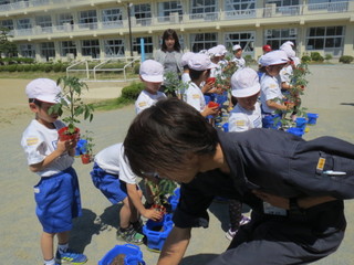 今日は、JAさんを講師に迎え、野菜や苗植えの体験をしました。