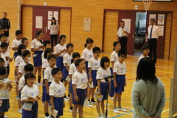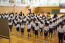 元気にあいさつをした後、「南相馬市民の歌」を全校で歌いました。南相馬市の3つの区の美しい情景が歌われています。