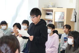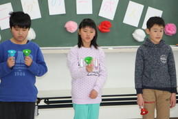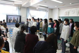6年生は、卒業を前に思うことについて発表しました。そして、お家の方へ、「ありがとう」(いきものがかり)を歌って感謝の気持ちを伝えました。