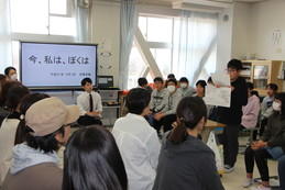 4年生は、二分の一成人式を行いました。将来の夢について発表していました。