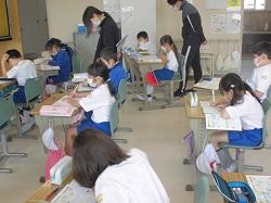 色使いや筆づかい、その他の工夫した技法を用いて、自分が思い描く模様(もよう)を表現していました。準備から活動、後片付けまで円滑に進める様子が見られました。