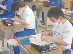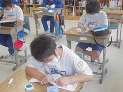 「本返しぬいの仕方を理解して、挑戦すること」をテーマに活動していました。子どもたちは、ぬい方を画面で確認した後に、練習用布を利用して一つずつていねいに挑戦していました。これからの作品つくりも楽しみです。