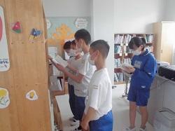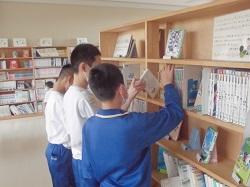 学校司書の先生に整備を進めていただいている図書室を利用し、読みたい本を選んでいる様子です。図書委員会の皆さんの活動が始まったり、新刊図書が増えたりしてくると、また趣の異なる図書室になってきますので、どうぞお楽しみにしてください。