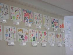 自分が画用紙に描きたいものを思い思いに表現しました。教室広報の掲示板が華やかです。