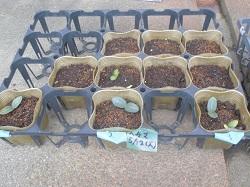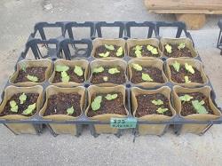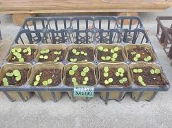 「ひまわり」「ホウセンカ」「オクラ」「ピーマン」「ヘチマ」等が、少しずつ芽を出し生長しています。
