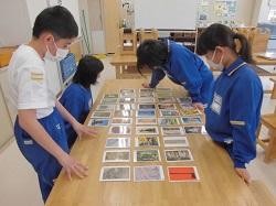 「アート(芸術)が表現されているカードの中から、数枚のカードを選び、感じたことを話し合うこと」をテーマに学習していました。子どもたちは、カードから得られた情報や自分の感覚をもとに、発表し合いながら、作品のよさにふれていました。