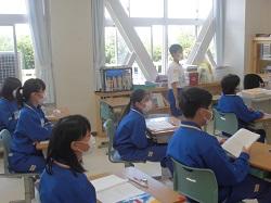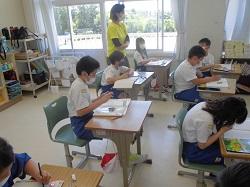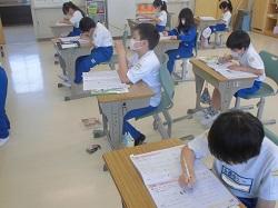 「これまでに学習してきた単元の中の漢字と言葉の理解を深めること」をテーマに学習していました。子どもたちは、ドリルの問題に解答した後に、先生に確認してもらいながら先へ進んでいました。