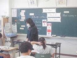 「世界の国について考えること」をテーマに学習していました。子どもたちは、電子黒板の映像を見たり、聞こえてくる音声に集中して耳を傾けたりしながら、国名や首都名を聴き取っていました。また、聴き取った国名や首都名を英語を使って問答していました。