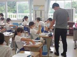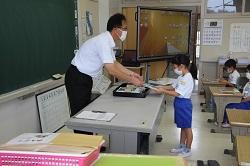 大甕小学校のひとコマ(7月10日)※「ご入学おめでとうノート・鉛筆」贈呈を含む。