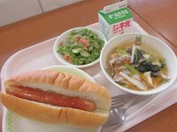 今日の献立は「セルフウインナードックパン」「牛乳」「トマトサラダ」「イナムドゥチ」でした。