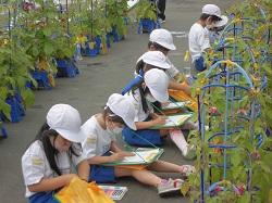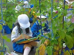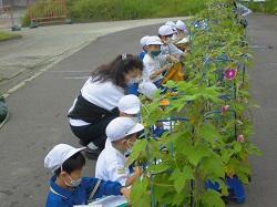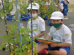 「アサガオの成長を観察して、その結果を記録すること」をテーマに活動していました。子どもたちは、花や葉、茎の色・形・大きさ等をしっかり観察して、絵や言葉で用紙に書きまとめていました。