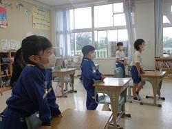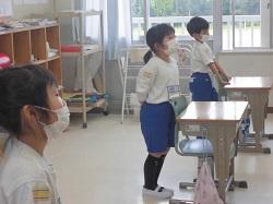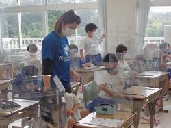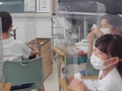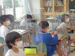 音楽科の学習時間(笛や鍵盤ハーモニカの演奏)に使用するために、机上用のパーテーションを組み立てていました。子どもたちは、準備や使い方、後片付けの仕方について確認していました。