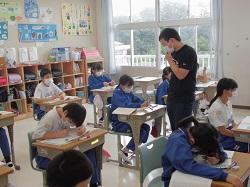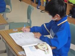 「調べてことを正確に伝える報告文の書き方について知ること」をテーマに学習していました。子どもたちは、教材文の「引用」されている記述例から、目的に応じて引用することの大切さを理解していました。