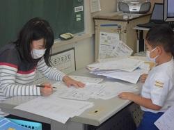 「これまでのドリルを使った学習に加えて、プリントの練習問題に挑戦すること」をテーマに学習していました。子どもたちは、数の大きさを思い起こしながら「ひき算」の問題を解決していました。