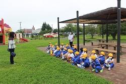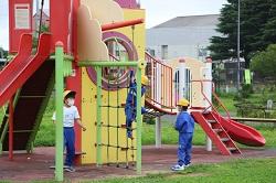 「公園で遊ぶこと、水に親しむこと」をテーマに活動していました。子どもたちは、高見公園の使い方を確認した後に、固定施設や遊具を利用して思う存分楽しんでいました。顔から髪の毛から、ハンカチまでびっしょりに…。学校に戻っての第一声は「楽しかった。」(満面の笑みで)でした。
