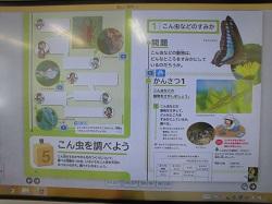 「こん虫などの動物は、どんなところをすみかにしているのかを調べること」をテーマに学習していました。子どもたちは、校庭でこん虫を探して、そのすみかを調べていました。