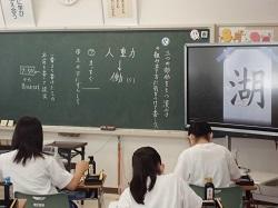 「漢字の組み立てに気を付けて書くこと」をテーマに学習していました。子どもたちは、3つの部分からなる「働」の漢字を例にして確認した後に、「湖」の組み立てを確認して練習していました。