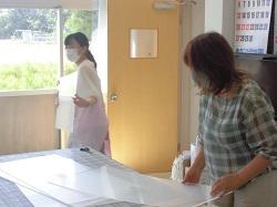 9月1日(火)より福島県教育委員会からスクール・サポート・スタッフを派遣いただき、「感染防止対策(消毒作業)」や「担任が授業を行うに当たっての支援・補助」を行っていただいており、既に各場面でお世話になっております。掲載した写真は、音楽室や体育館での活動後の消毒作業、文書・プリント等の印刷・配付準備、新規購入したアクリル板パーテーションの設置作業に関するものです。