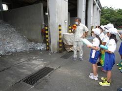 始めに映像を見て、施設の概要についての説明を受けた後、実際に施設内を見学。ごみの処理の仕方や資源をリサイクルする工程について学びました。
