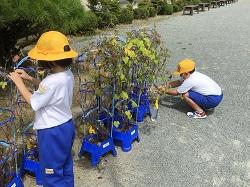 外を見ると、1年生は1学期から大切に育ててきたアサガオに水やり。