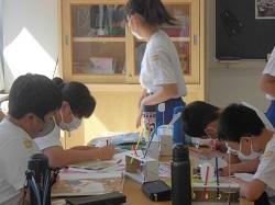 「単元のまとめをすること」をテーマに学習していました。子どもたちは、夏の大三角(わし座のアルタイル・はくちょう座のデネブ・こと座のベガ)や天の川、さそり座(アンタレス)等についてまとめ、声に出してしっかり記憶していました。