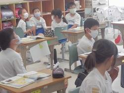 「教材曲:うさぎ から伝わるふんいきを感じ取って歌うこと」をテーマに活動していました。子どもたちは、曲の感じや場面等を話し合って、どのように歌うかを考えていました。