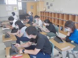 ▼教職員研修の様子です。(ICT支援員による研修環境の準備、アプリZoomを使用したオンライン講習)株式会社ロイロの担当の方の御指導のもと、iPad導入アプリ「ロイロノート SCHOOL」の説明や使い方に関する研修を行いました。アプリで使用できる機能の説明をいただくとともに、教職員一人が一端末を操作しながら、実際の教育活動や授業場面でどのように活用できるのかの事例を学びました。(※ 南相馬市では現在、教職員の研修を重ねるとともに、インターネットのさらなる環境整備を進めているところです。)