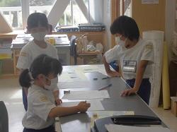 「町探検で質問することを考えること」をテーマに活動していました。子どもたちは、大甕幼稚園やコンビニエンスストア、リサイクルショップでの質問内容を提案したり話し合ったりしていました。