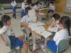 「これまでの学習内容をもとに、農家の方に質問してみたいことを考えること」をテーマに学習していました。子どもたちは、各自が考えた質問内容を回し読みしながら、考えの交流をしていました。