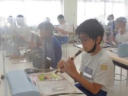 「旋律のまとまりに気を付けて演奏すること」をテーマに活動していました。子どもたちは、ブレス(息つぎ)記号の位置に着目して、旋律のまとまりをていねいに演奏していました。