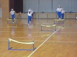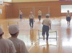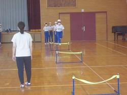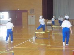 「自分に合う場を見つけて、リズミカルにハードルを越すこと」をテーマに活動していました。子どもたちは、ハードル間6m、6.5m、7mの場で、試しの運動を行いながら自分に合う場を見つけ、越し方の動きに挑戦していました。