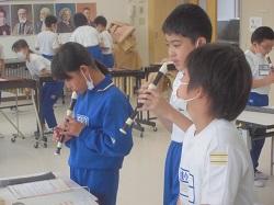 「いろいろな楽器の音が重なり合う響きを楽しみながら演奏すること」をテーマに活動していました。子どもたちは、各パートに分かれて練習した後に全体で演奏し、音が重なり合う響きを味わっていました。