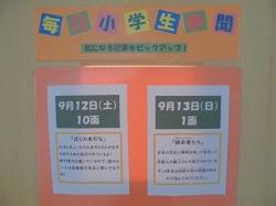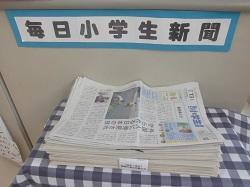 新聞記事を活用した掲示コーナーを新たに設置しています。入り口ではトピック的な予告編、室内では実際に新聞に目を通すという流れです。また今後は、4~6年生の各教室に「新聞コーナー(パネル展示)」を設置していく予定です。