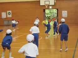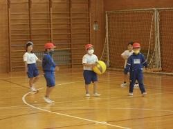 「覚えたルールを守って、ドッジボールのゲームを行うこと」をテーマに活動していました。子どもたちは、これまでに何回か繰り返し行っているうちに、「つかむ・投げる・とる・かわす」等の動きもよりよくなってきています。