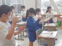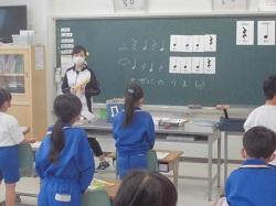 「教材曲:この空とぼう の旋律に合わせて、リズム打ちをすること」をテーマに活動していました。子どもたちは、昨日までのペアでの練習の成果を生かして、全体でのリズム打ちに挑戦していました。