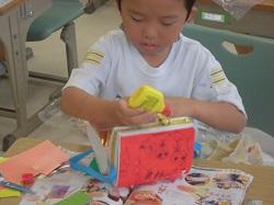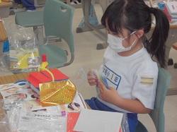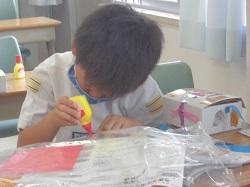 「かざりをくふうして、すてきなはこをつくること」をテーマに活動していました。子どもたちは、飾りを紹介している画面や友達の作品を参考にしながら、箱づくりを進めていました。