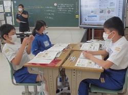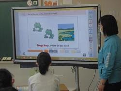「生き物のくらしを知ること」をテーマに学習していました。子どもたちは、画面の映像や音声、教科書、ワークシートをもとにしながら、生き物が住んでいる場所や食べ物についてまとめていました。