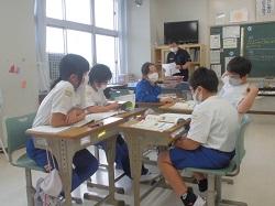 「学習のまとめをすること(グループ新聞作成)」をテーマに学習していました。子どもたちは、「日本の漁業」「長崎漁港の工夫」「つくり育てる漁業」「魚を原料に」を視点に、まずはグループで役割分担するとともに、取り上げる内容について話し合っていました。