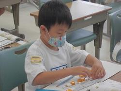 「米粒の色や大きさ、動きの様子を見たり、音を聞いたり、香りをかいだりして観察・記録すること」をテーマに活動していました。子どもたちは、手順に沿って作業を進めながら、観察と記録、振り返りをしていました。