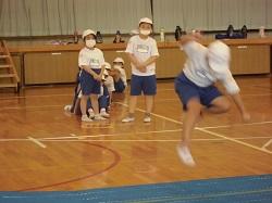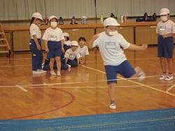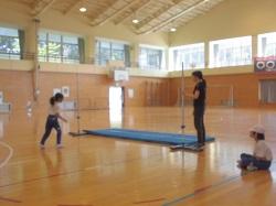 「ゴムのバーを利用して高跳び遊びをすること」をテーマに活動していました。子どもたちは、片足で踏み切ってバーを越えて着地するという動きを楽しんでいました。