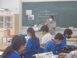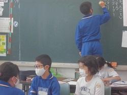「新しい食料生産の工夫を紹介し合い、これからの食料生産について考えること」をテーマに学習していました。子どもたちは、資料から調べたことをもとに発表し合い、全体でこれからの食料生産についてまとめていました。