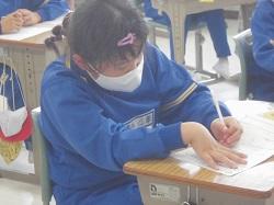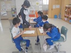 「節度ある生活のためには、どのような工夫をすればよいのかを考え、進んで実行しようとする気持ちをもつこと」をテーマに学習していました。子どもたちは、資料をもとに登場人物の気持ちや考え方を確認した後に、自分の経験に置き換えて振り返りながら、これからの節度ある生活の実践について考えていました。